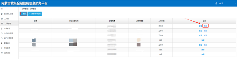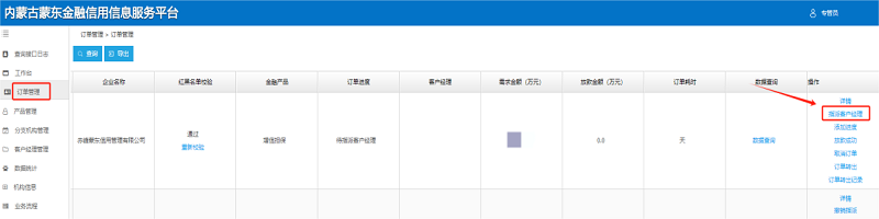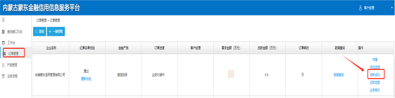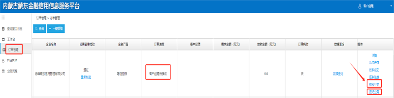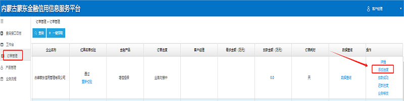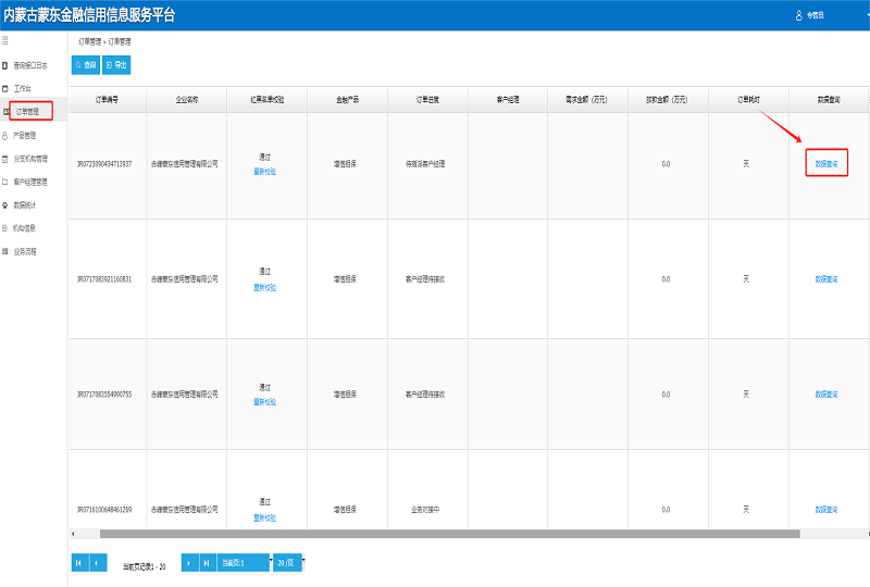 1.查看企业数据。点击“订单管理”查看所有企业发布的订单。在红黑名单校验栏点击“重新校验”,校验企业红黑名单信息。
