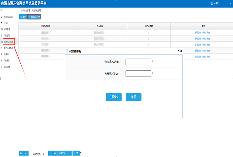 4.添加分支机构。点击“分支机构管理”,点击“添加分支机构”,填写分支机构信息。