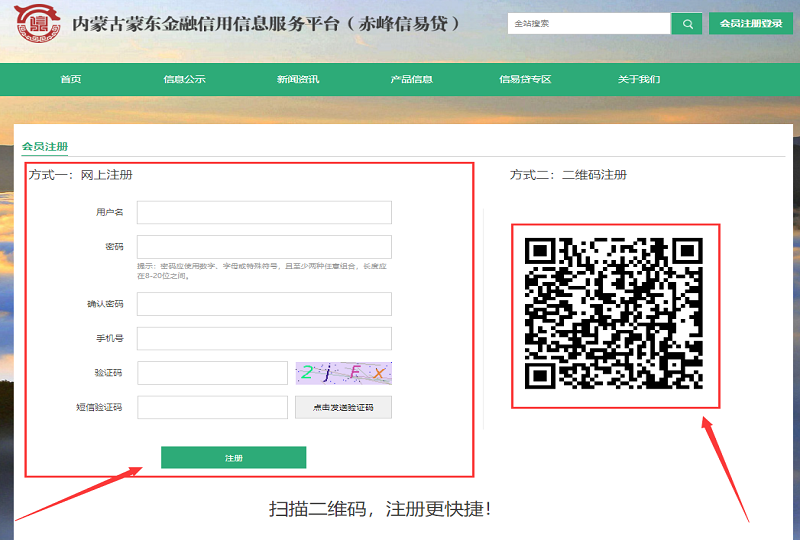 第三步:选择两种注册方式中的一种,完成注册,推荐使用二维码注册,二维码实名认证后可以直接发布融资需求,省去多余步骤。